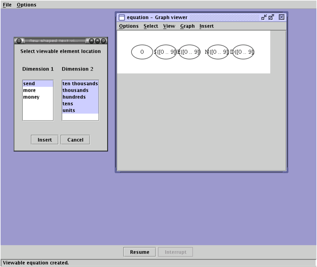 Figure 3.11 shows the range select dialog for the on going SEND+MORE=MONEY example.