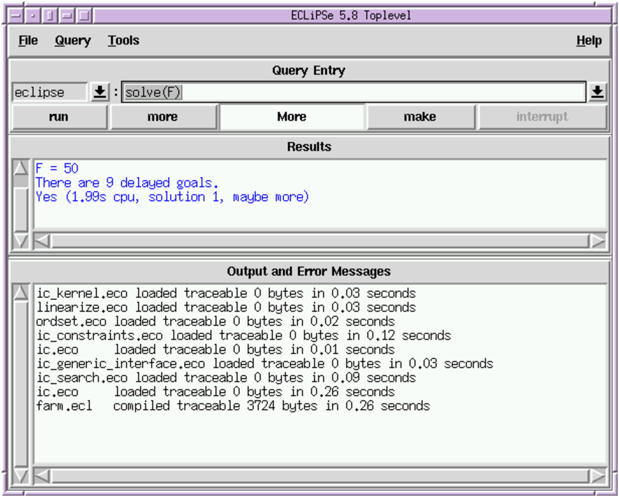 Note that help on TkECLiPSe and its component tools is available from the Help menu in the top-level window.