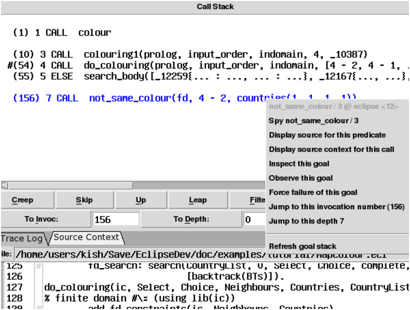 Popup Menu for a Goal in Tracer’s Call Stack
