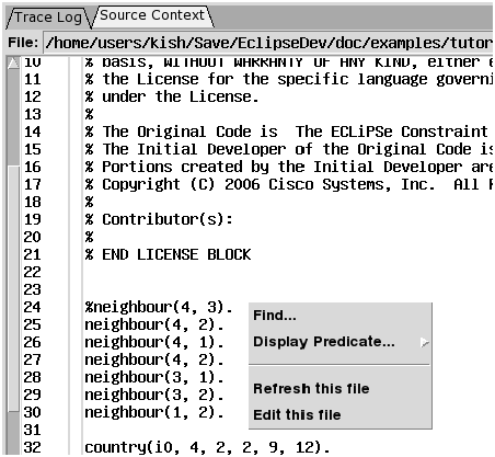 the editor from within ECLiPSe. For example, from the source context view