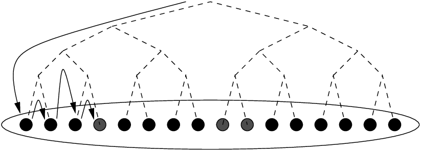Figure 12.4 shows a sample tree search, namely a depth-first incomplete traversal. As opposed to that, figure 12.3 shows an example of an incomplete move-based search which does not follow a fixed search space structure. Of course, it will have to take other precautions to avoid looping and ensure termination.