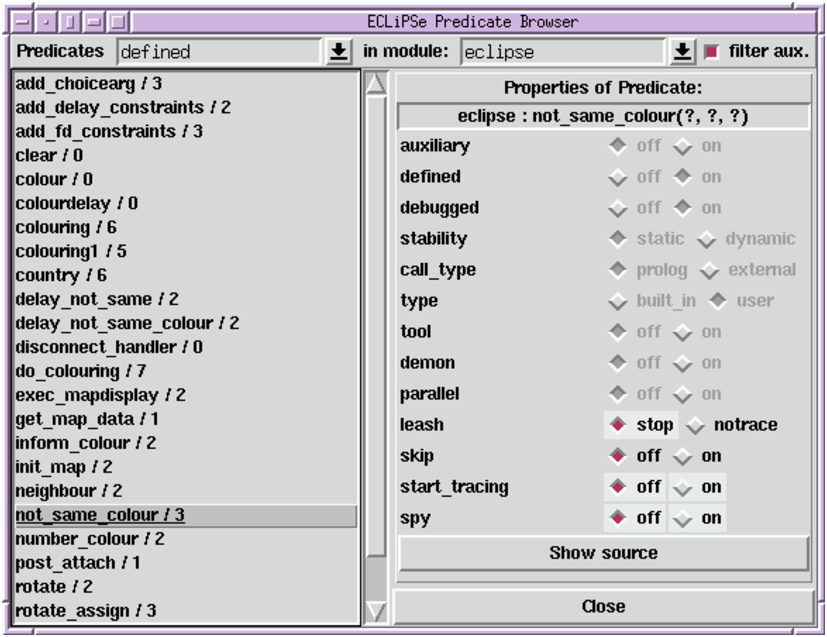 We can now view the source code for the predicate by clicking on the Show source button, which will show the selected predicate’s source in the source context view. The code for the predicate is: