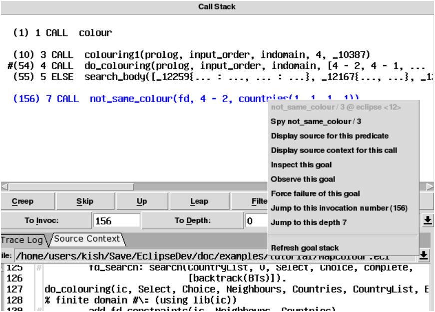 Popup Menu for a Goal in Tracer’s Call Stack