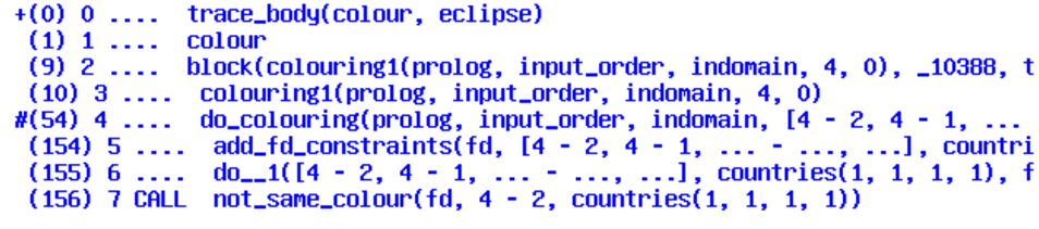 We see that the tracer has jumped to a not_same_colour/3 goal