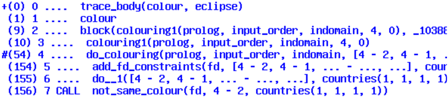We see that the tracer has jumped to a not_same_colour/3 goal